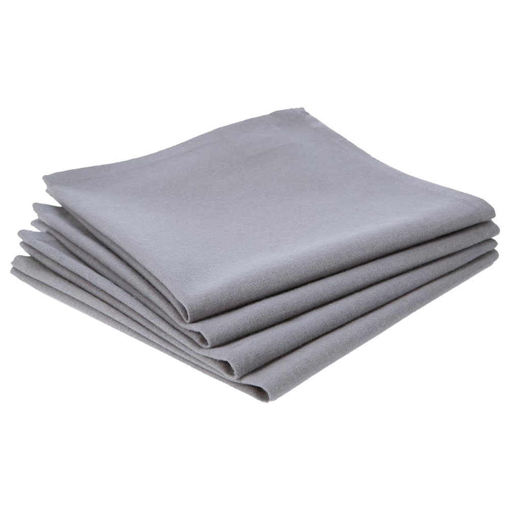 Table napkins, made of hypoallergenic cotton material, with dimensions of 40x40 cm, in gray color. The constituent material is resistant to washing, it does not absorb grease and does not retain wrinkles, which makes it easier to wash and iron. This product is suitable for daily use in indoor non-professional environments and it can be easily washed in the washing machine in a temperature up to 40°C, to maintain its color and softness.