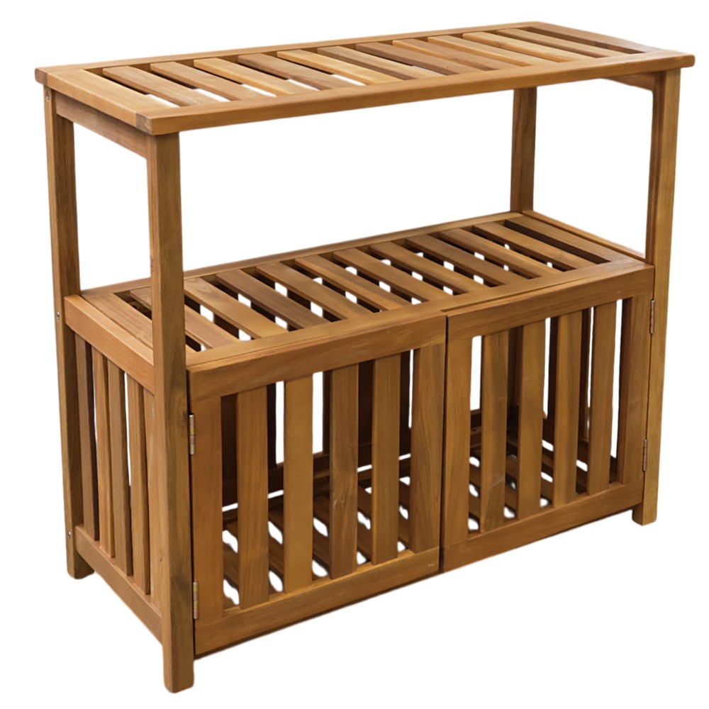 Made from tropical Acacia wood and designed for maximum functionality during use. Tropical Acacia wood provides high resistance to moisture and rot. The relatively high density of the wood makes it durable against stress and repeated use. The natural color of the wood is ensured thanks to the natural Acacia oils found inside the wood. Designed to be multifunctional. The product serves as a side table with considerable storage space. The doors are closed by magnetic closure. The intelligent design and ergonomic shape make this table suitable for any type of environment.