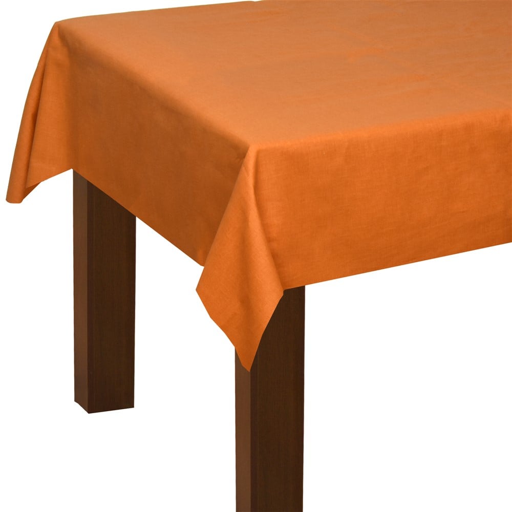 Rectangular-shaped tablecloth without napkins, made of cotton material, with dimensions of 140x240 cm, in orange. The constituent material is resistant to washing and is treated with oil-repellent treatment for protection against grease stains, so that the tablecloth has no grease-absorbing properties and stains are easily cleaned. It is mainly used in home environmments, for holidays or for daily use. It can be washed in the washing machine at a temperature of 40 ° C
