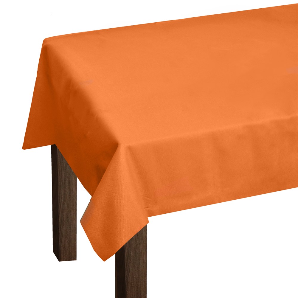 Rectangular-shaped tablecloth with 6 napkins, made of cotton material, with dimensions of 140x180 cm, in orange and beige color. The constituent material is resistant to washing and is treated with oil-repellent treatment for protection against grease stains, so that the tablecloth has no grease-absorbing properties and stains are easily cleaned. It is mainly used in home environmments, for holidays or for daily use. It can be washed in the washing machine at a temperature of 40 ° C.