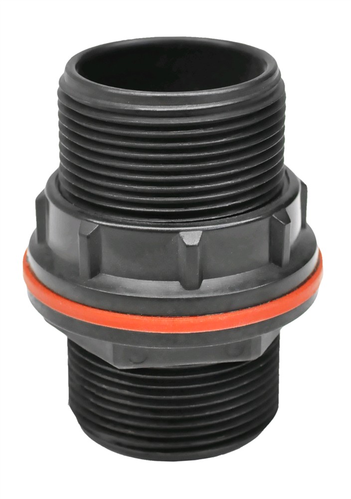 Tank adaptor 1-1/2" male. Used to installations water supply infrastructure lines, in irrigation and agricul, etc. Tank adaptor with male fillet enables joining the network of pipes or different fitting threading through, for joining the fillet recommend tu use teflon. Manufactured with European standards, resistant to corrosive materials designed to withstand pressure up to 6 Bar.