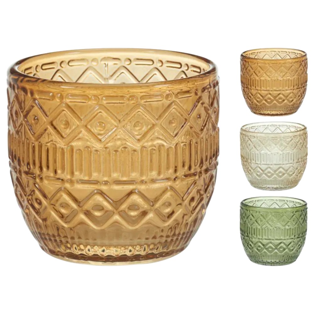 This 6.5 cm tall glass candle holder is a small accessory, but with a big impact in creating a warm and welcoming atmosphere in any space. Its compact design makes it suitable for any table, shelf or dresser, bringing an elegant and delicate touch to your decor. The different colors of the glass give the holder a unique and vibrant character, making it stand out and bringing soft light and warmth naturally. The clear glass material reflects the candlelight in a special way, creating beautiful reflections that enchant and soothe the senses. This holder is perfect for use in relaxing evenings, romantic dinners or as part of everyday decor that gives the environment a special and harmonious feel. Simple, but stylish, this candle holder is the ideal choice for those who want to bring light and warmth with an elegant and vibrant touch.