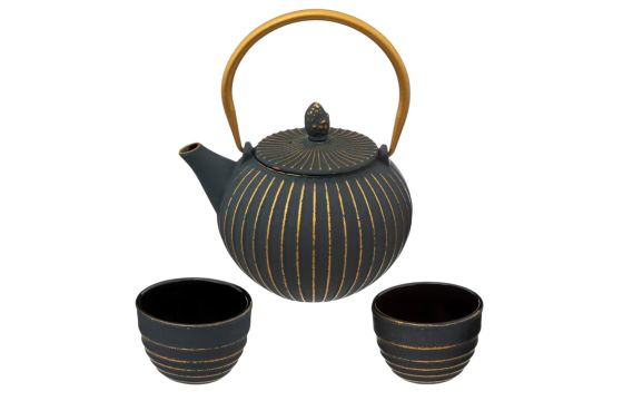 A beautiful and elegant teapot and cup set, made of blue cast iron. It looks elegant and fits well with different home interiors. The teapot is made of cast iron and is easy to keep clean. The handle has a beautiful blue color, which makes the combination with tauja assortments more beautiful and unique.