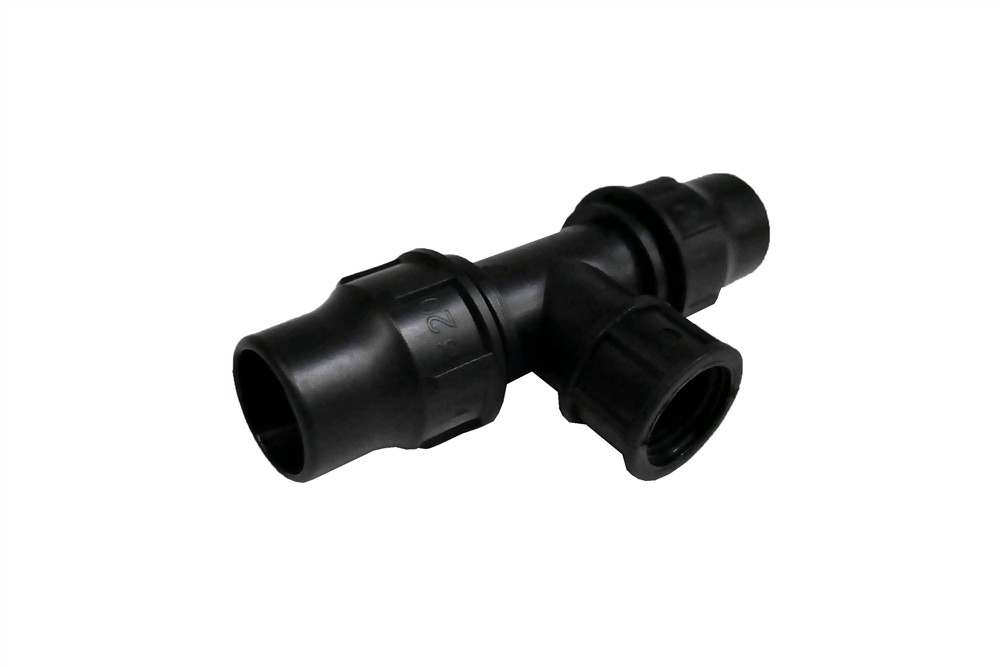 Tee with faucet of PP 20x1/2"x20 mm female with angle 90°. Used to installations angular water supply infrastructure lines, in irrigation and agricul, etc. This tee enables network branching 90° angle. This tee connect LDPE pipe Ø 20 with other fittings by fillet, for joining the fillet recommend tu use teflon whiles pipe connect whith tee in mechanically with faucet. Manufactured with European standards, resistant to corrosive materials designed to withstand pressure up to 6 Bar.