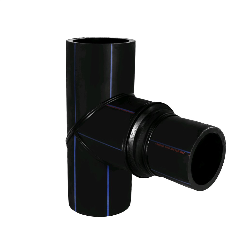 Tee reduced HDPE Ø 315x250x315mm with angle 90° used widely today in Europe for angular lines installations of water supply infrastructure and lines for the transport of natural gas. The tee reduced mounted by the method Butt-fusion. Tee enables reduced network branching of HDPE pipe Ø 250 from main pipe HDPE Ø 315. For welding HDPE pipe with tee used welding heat machinery which makes it possible merger of tee pages and pipe and through pressure enables their union. Manufactured with European standards, resistant to corrosive materials, high resistance to deformation of land and resistant to pressure up to 16 Bar.