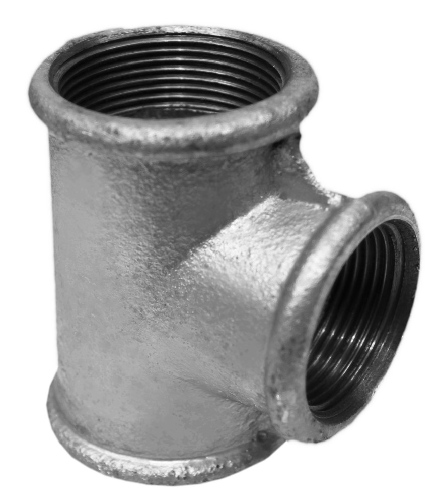 Galvanized tee reduced 1-1/4x1x1/1-4" female with angle 90°. Used to installations angular lines of drinking water, industrial water lines, transportation fuel lines, etc. Tee reduced with female fillet enables reduced network branching angle 90°. Manufactured to high standards, galvanized makes it more resistant to atmospheric agents and corrosion. Designed to withstand pressure up to 25 bar. Recommended for external surface installations