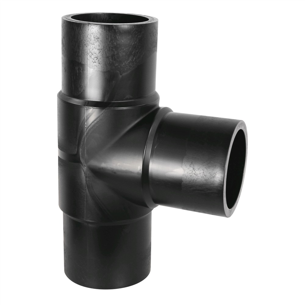 Tee HDPE Ø 180mm with angle 90° used widely today in Europe for angular lines installations of water supply infrastructure and lines for the transport of natural gas. The Tee mounted by the method Butt-fusion. Tee enables network branching 90° angle. For welding HDPE pipe with tee used welding heat machinery which makes it possible merger of tee pages and pipe and through pressure enables their union. Manufactured with European standards, resistant to corrosive materials, high resistance to deformation of land and resistant to pressure up to 16 Bar.