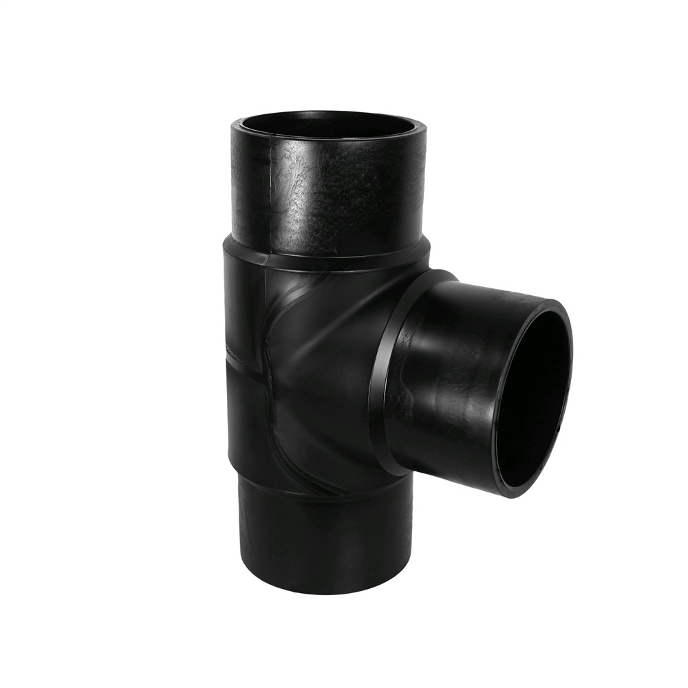 Tee HDPE Ø 200mm with angle 90° used widely today in Europe for angular lines installations of water supply infrastructure and lines for the transport of natural gas. The Tee mounted by the method Butt-fusion. Tee enables network branching 90° angle. For welding HDPE pipe with tee used welding heat machinery which makes it possible merger of tee pages and pipe and through pressure enables their union. Manufactured with European standards, resistant to corrosive materials, high resistance to deformation of land and resistant to pressure up to 10 Bar.