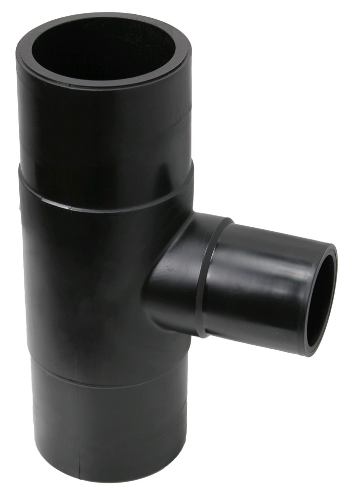 Tee HDPE Ø 110mm with angle 90° used widely today in Europe for angular lines installations of water supply infrastructure and lines for the transport of natural gas. The Tee mounted by the method Butt-fusion. Tee enables network branching 90° angle. For welding HDPE pipe with tee used welding heat machinery which makes it possible merger of tee pages and pipe and through pressure enables their union. Manufactured with European standards, resistant to corrosive materials, high resistance to deformation of land and resistant to pressure up to 10 Bar.