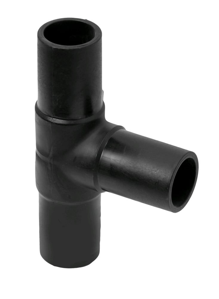 Tee HDPE Ø 40mm with angle 90° used widely today in Europe for angular lines installations of water supply infrastructure and lines for the transport of natural gas. The Tee mounted by the method Butt-fusion. Tee enables network branching 90° angle. For welding HDPE pipe with tee used welding heat machinery which makes it possible merger of tee pages and pipe and through pressure enables their union. Manufactured with European standards, resistant to corrosive materials, high resistance to deformation of land and resistant to pressure up to 16 Bar.