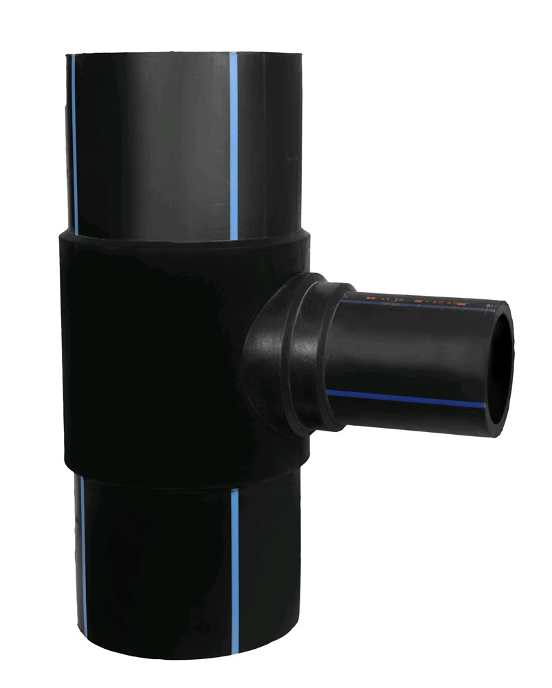 Tee reduced HDPE Ø 200x110x200mm with angle 90° used widely today in Europe for angular lines installations of water supply infrastructure and lines for the transport of natural gas. The tee reduced mounted by the method Butt-fusion. Tee enables reduced network branching of HDPE pipe Ø 110 from main pipe HDPE Ø 200. For welding HDPE pipe with tee used welding heat machinery which makes it possible merger of tee pages and pipe and through pressure enables their union. Manufactured with European standards, resistant to corrosive materials, high resistance to deformation of land and resistant to pressure up to 16 Bar.