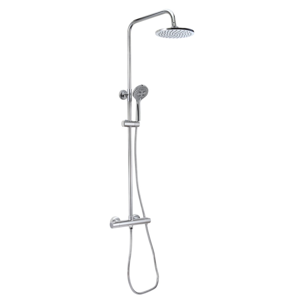 The thermostatic shower column "Sydney" completes your toilet with a product that is not only modern but also practical. Designed by the Italian brand IDRO BRIC in high quality stainless steel material in chrome silver color. With the option of adjusting the temperature through the thermostatic mixer, you can say goodbye to the manual adjustment of the handle when taking a shower, but you can adjust the water to the desired temperature. With an adjustable height from 90.5 cm to 114.5 cm and a depth of 34.9 cm, this column is suitable for the whole family. Equipped with water diverter from which you can choose to use the 20 cm diameter primary head or the 3-function hand shower.