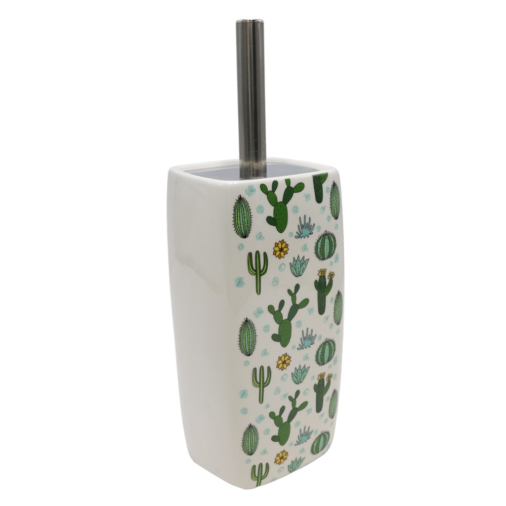 Toilet brush holder, ceramic, white/green, 11x11xH38 cm