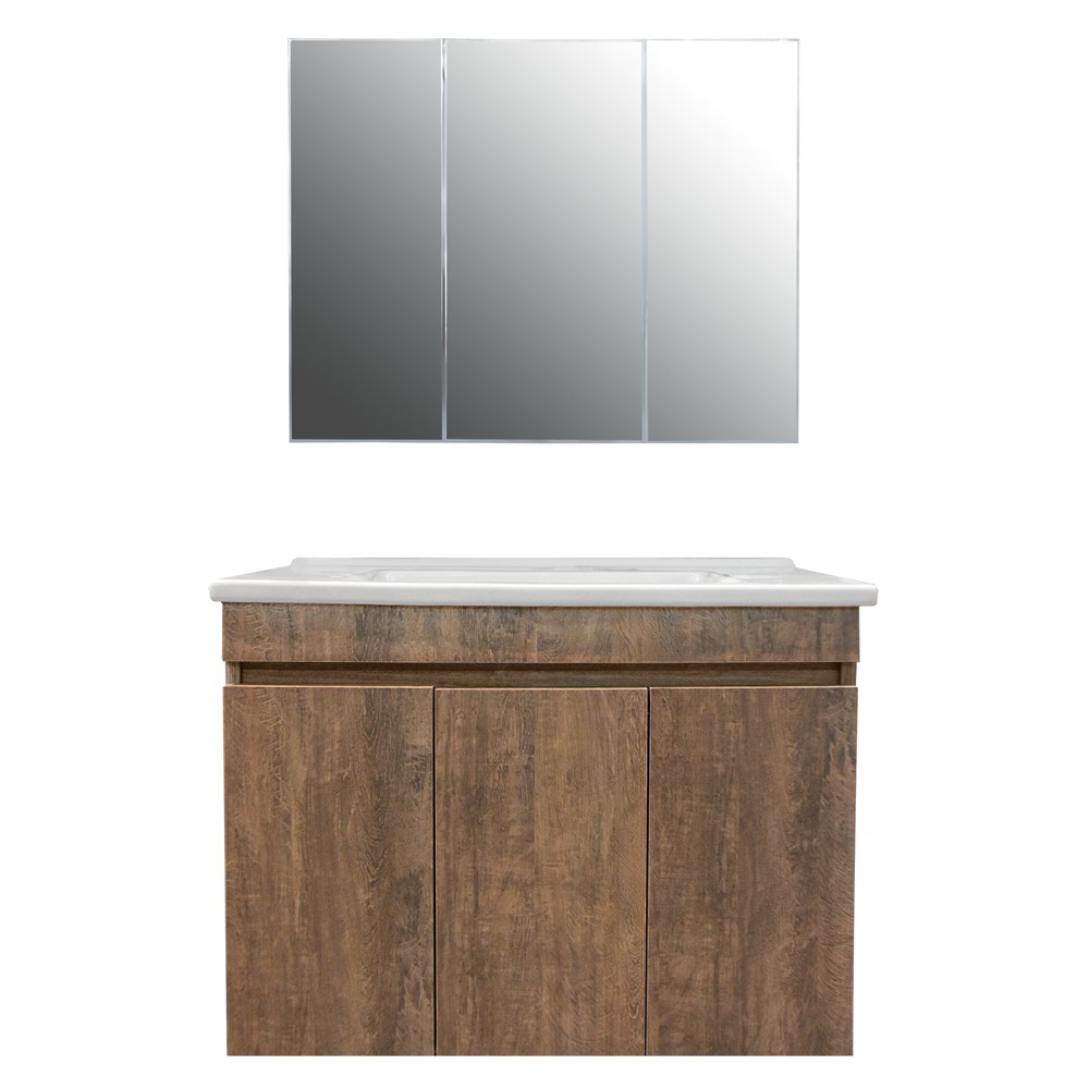 The OMEGA 85 furniture set presents the elegant design that enlivens your bathroom. The white porcelain sink offers style in your bathroom decor, ease of cleaning while providing a beautiful and very modern look for bathrooms with large spaces. Melamine furniture material is moisture resistant. The color of natural oak wood is very well composed in rooms with modern monochrome tiles and motifs of different colors. The set includes the sink, the cabinet underneath and the mirror, all packaged for a very simple and quick assembly by anyone. With this set, you can remodel the environment making maximum use of the spaces and always bringing innovation and comfort to your home.