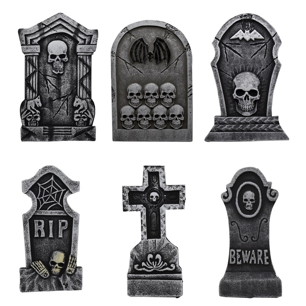 Get ready to turn your front lawn into a graveyard this Halloween with this Cemetery Kit. The kit includes styrofoam tombstones which have four plastic stakes (two per tombstone). These plastic stakes are used to stick the tombstones into the ground. This kit will get you set to terrify your neighbors!