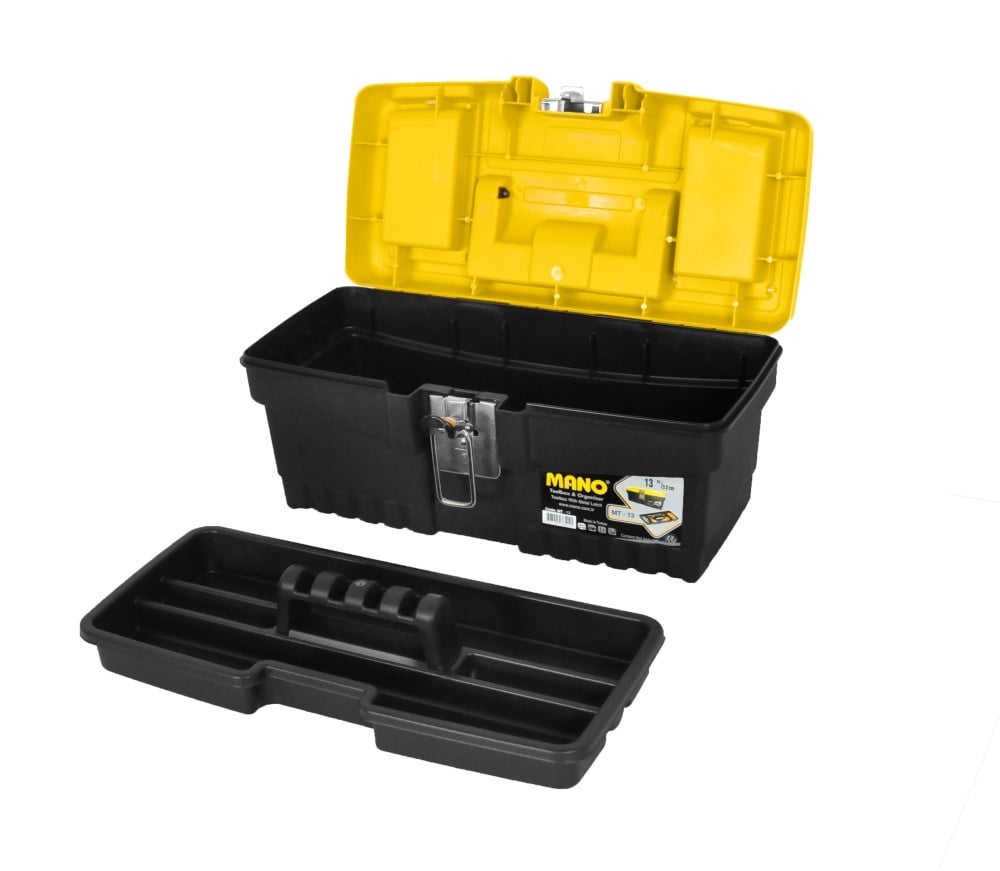 Tool box is designed with the professional in mind; a heavy duty constructed body adds strength and durability. A removable tool tray is a perfect way to organize your tools in your home or at the jobsite.Removable tool tray.Durable heavy construction