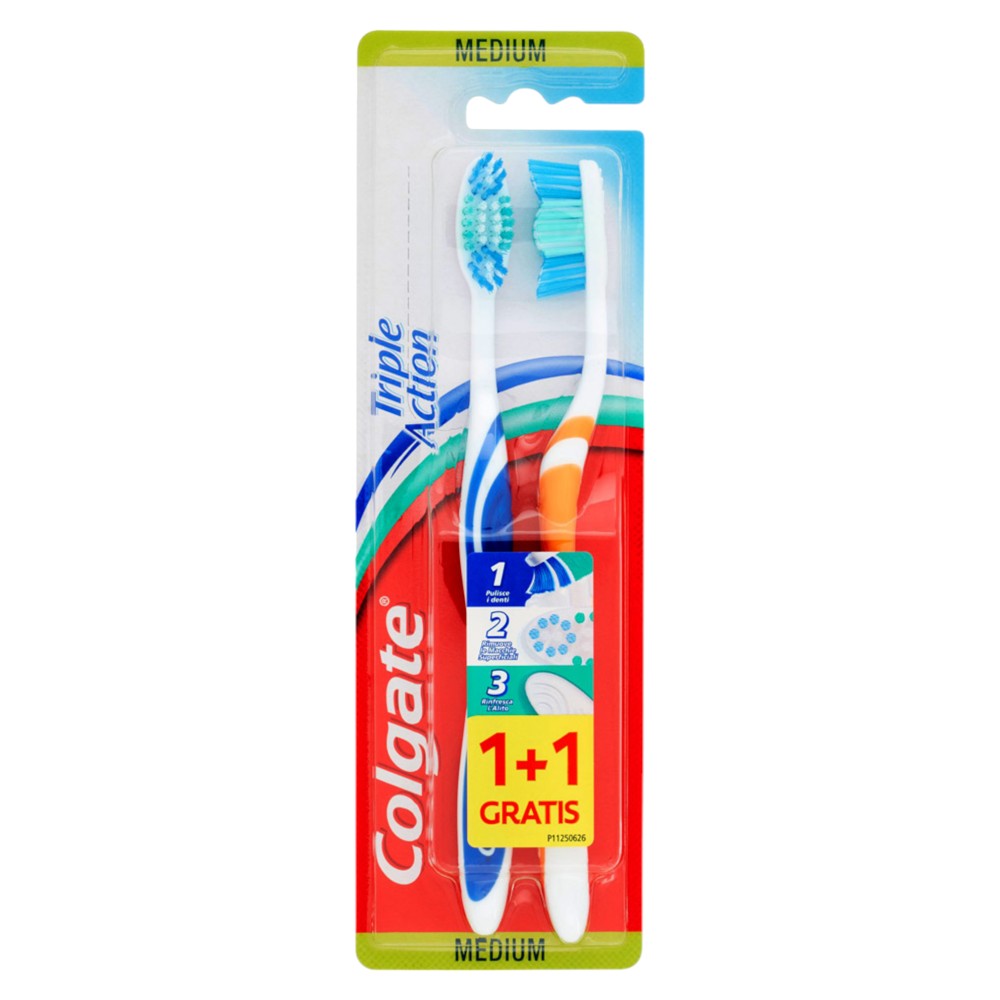 The Colgate Triple Action toothbrush cares for your smile in three ways: cleaning teeth, freshening breath and removing surface stains. It has dual-headed cleaning bristles designed to reach and thoroughly clean teeth, while the circular bristle pattern helps gently remove stains, revealing the natural whiteness of your smile. It ensures the best removal of bacteria unlike a regular toothbrush which does not clean your tongue and cheeks.