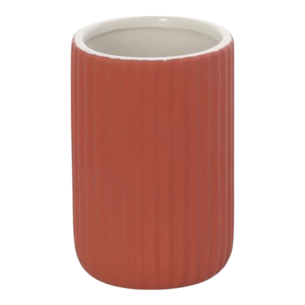 Color toothbrush holder produced by FERIDRAS in high quality ceramic material. Its red color fits easily with all types of furnishings. This accessory does not need assembly as it rests on the furniture. Complete the set of accessories with the ''Color'' line. Dimensions, height : 11.5 cm, diameter : 7 cm.