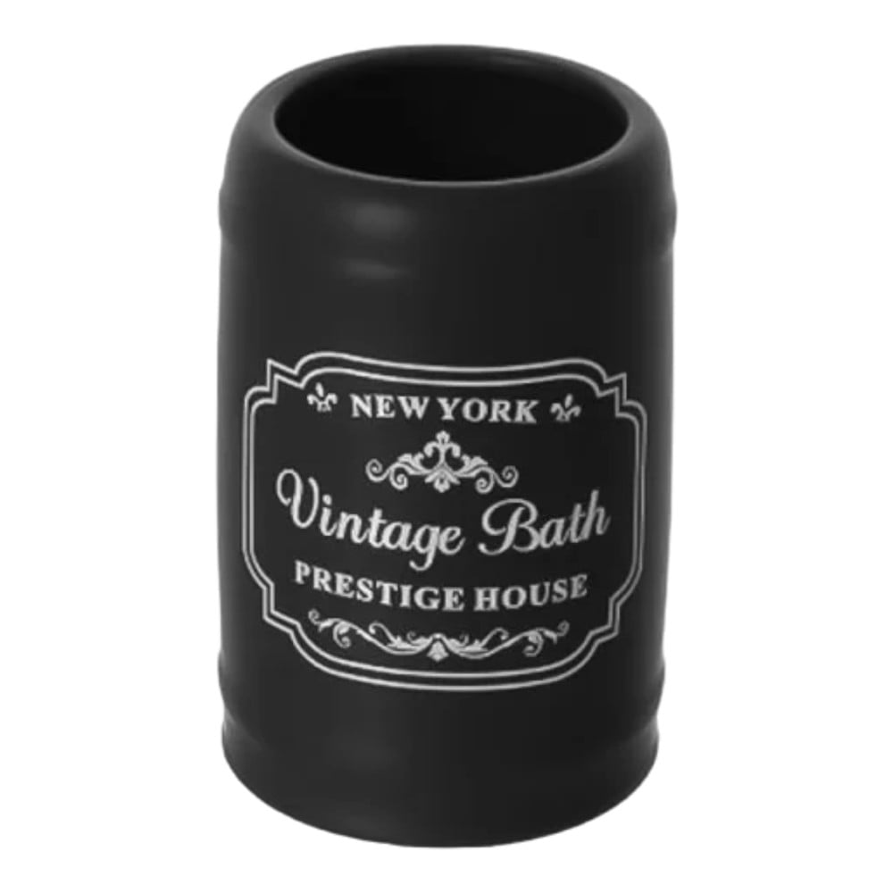 A toothbrush holder stylized in a vintage design. It is made of high quality ceramic in black color. This object will give a beautiful retro feel and elegance to your bathroom, keeping toothbrushes organized in a safe and hygienic way. With its unique style, this brush holder will be a charming addition to your decor.