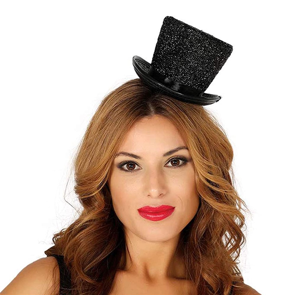 Top hat glitter, mini ladies polyester, black
