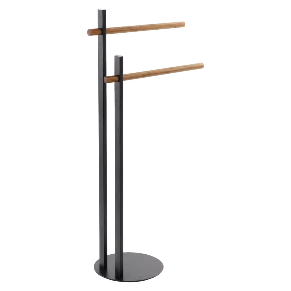 Towel hanger with base produced by FERIDRAS in stainless steel material and bamboo handles. Its matte black color and bamboo material will give your toilet an aesthetic and modern look. The base with a diameter of 22 cm offers stability in placement without the need for assembly or modifications of the tiles. Dimensions, height: 80 cm, diameter: 22 cm.