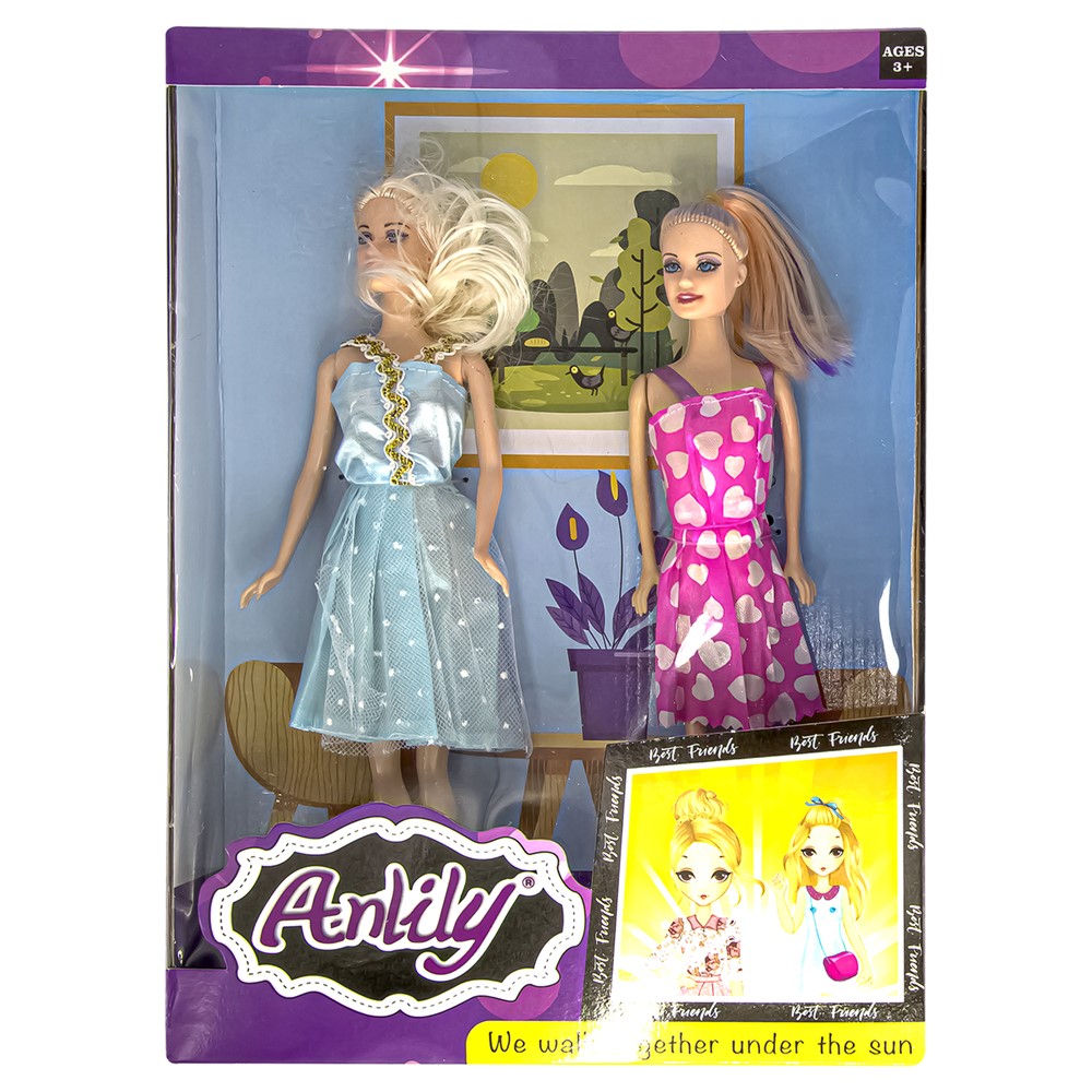 Toy set for girls, which includes two dolls, made of plastic material, in assorted colors. This set helps to develop the imagination, stimulates the development of the sensory skills and the development of learning skills in children, through role play. The constituent material and paint have no content that can be toxic or harmful for children and the product is certified for safety in use. This product is suitable for use by children over 3 years old.