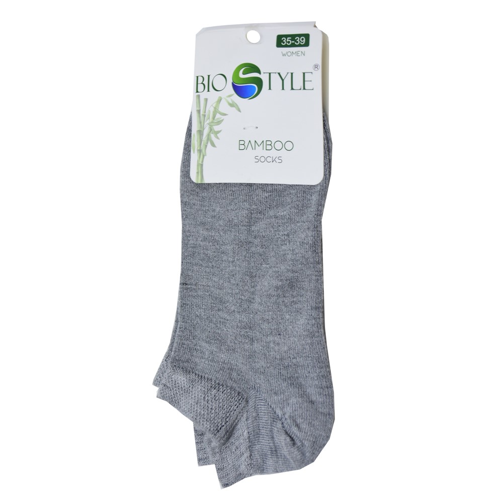 Trainers socks for women, made of 70% bamboo fiber, 27% polyamide and 3% elastane material, size 35-39, in different colors. The constituent material has hypoallergenic and anti-bacterial properties, it absorbs excess moisture, regulates skin temperature, stimulates optimal blood circulation, prevents unpleasant odors and prevents the formation of fungal infections or other skin conditions, such are eczema and dermatitis, on the skin of the feet. This product is gentle on the skin, it does not cause irritation and it is suitable for use on sensitive skin.