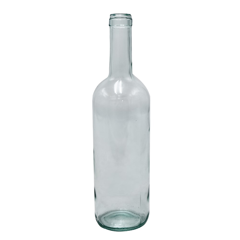 Bordeaux wine bottle in transparent color, made of glass material with a capacity of 0.75 lt (750 ml). The transparent wine bottle is mostly used for white wine. White wine bottles do not filter much light, therefore, white wine bottles are usually not suitable for storing wine aging. White bottles are usually used for wine that is drunk within 1 to 2 years after bottling, such as French Provence rose wine and Chilean Chardonnay white wine. Some sweet wines, such as Sauternes from France, Sauternes from Austria, Icewine from Canada and Tokay from Australia, are still bottled in white. But because it has a very strong antioxidant ability. Therefore, the right light does not have a very big effect on the quality of the wine. At the same time, the white bottle can be more favorable to observe the aging quality of sweet wine, easy to adjust the storage conditions