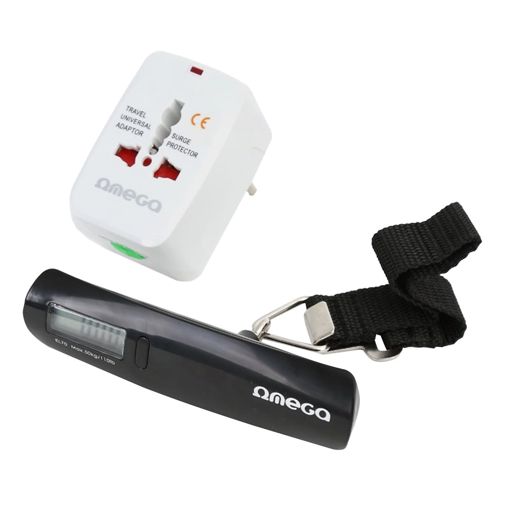 Set consisting of a universal adapter and the weight is ideal for people frequently traveling. Omega Universal power travel adaptor - compact solution for globetrotters This adapter combines 4 socket/plugs adapters in one sophisticated gadget. No matter where you travel: China, UK, Singapore, Thailand, Australia, Europe, USA, Japan - with this device you don't have to worry how to connect your notebook to electrical network. Omega OTRA1 - one adapter for all adventures! Travel scale is an ideal device that will allow You to check the weight of Your luggage. Capacity: 50kg. Save up expenses associated with excess weight limit luggage at airports!