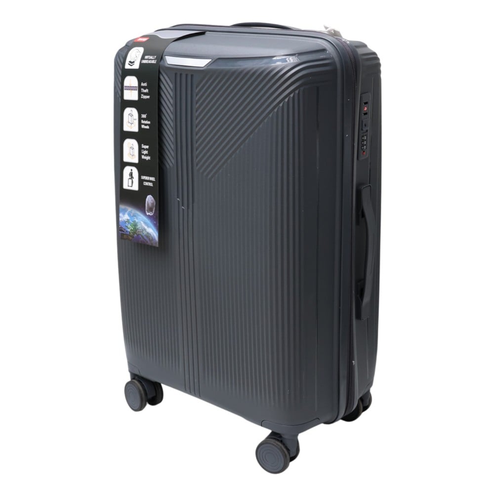 The 24” dark gray travel suitcase is the ideal choice for those looking for more space without compromising on style and functionality. Made of quality polypropylene, it offers high resistance to impacts and wear, while maintaining a lightweight structure that makes it easy to transport even on longer trips. Its modern and elegant design is perfect for both business trips and vacations, while the internal organization ensures order and convenience for each of your belongings. For maximum security, the suitcase is equipped with an anti-theft zipper that protects the contents throughout the trip, while the “soft touch” tires guarantee smooth, stable and noiseless movement on any surface. Strong, practical and reliable, this suitcase is the perfect partner for any destination.