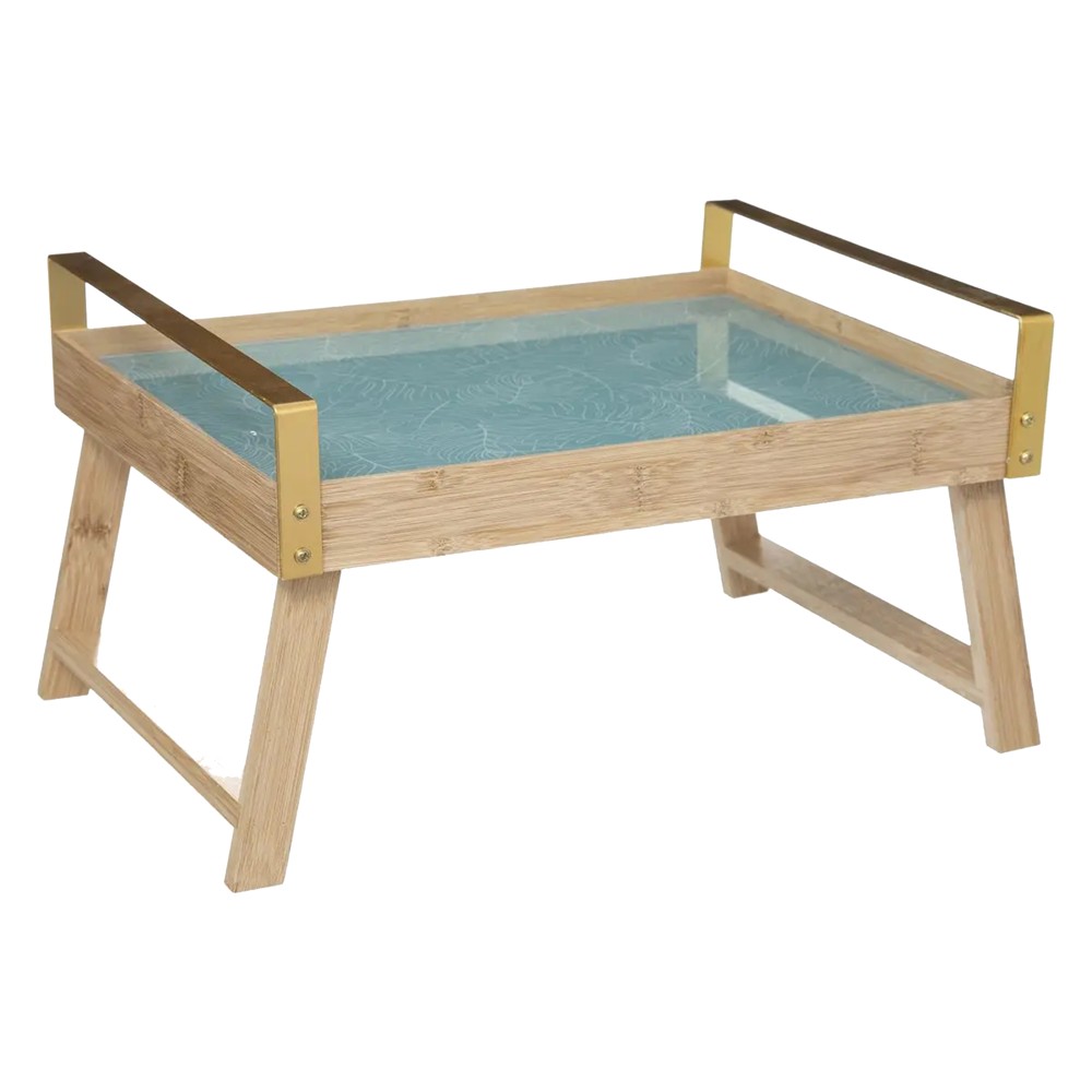 Tray, Palm, bamboo/glass material, colorful colors. Size 43.5x30.5xH23 cm. Add attention to detail in your kitchen by serving it the right way with a bamboo tray. The strong and durable material, with natural color will add more smiles during your meals. The simple rectangular shape of this plate with the raised border for holding it make a comfortable solution for your everyday life and not only.