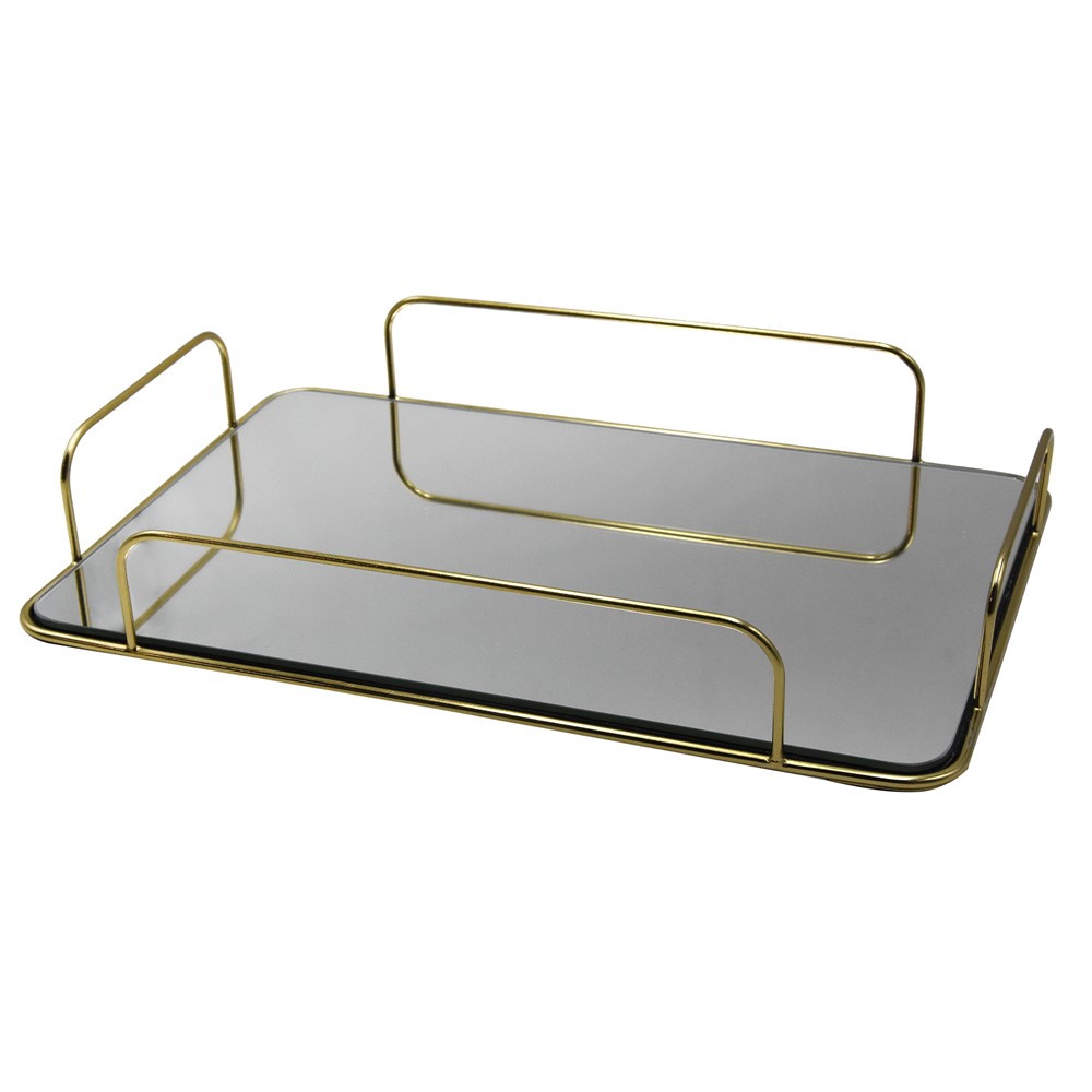 You're reviewing:Tray, with handles, glass and metal, golden, 25x38 cm