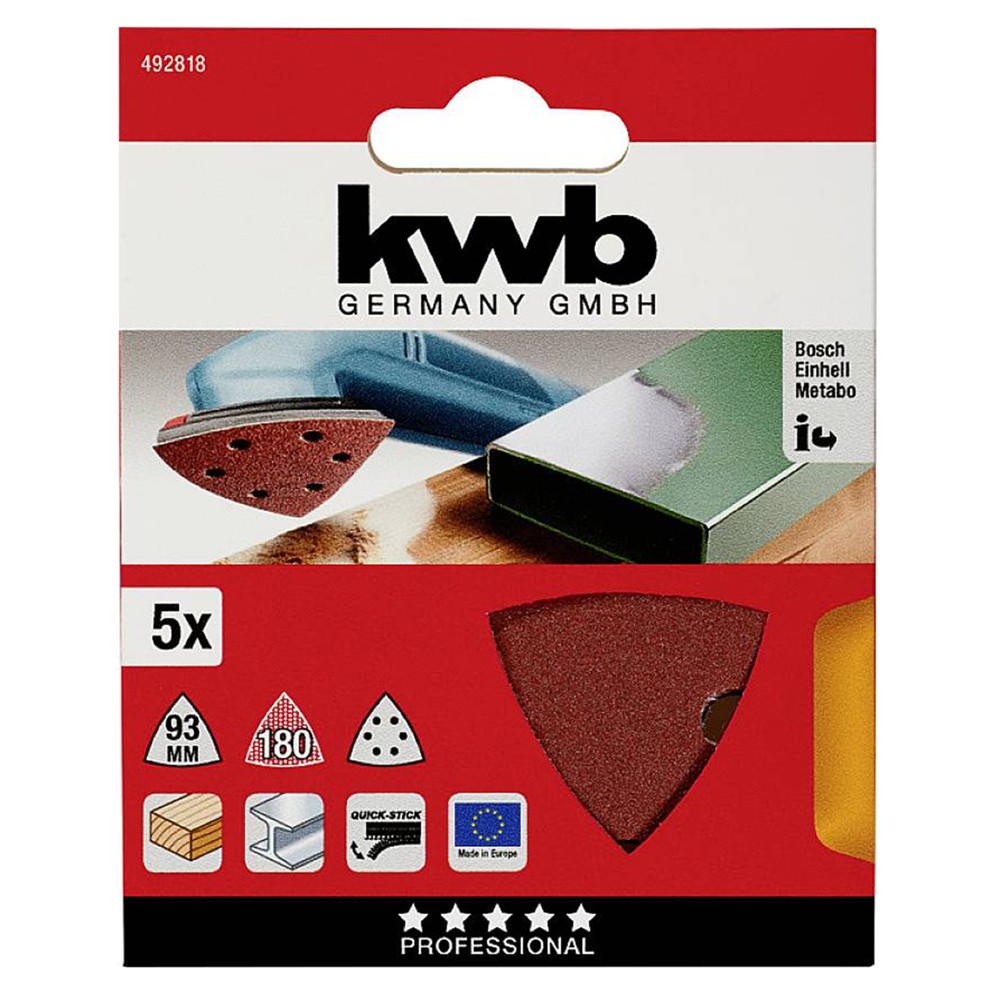Triangular sandpaper, KWB, P180, 93 mm, 5 pieces