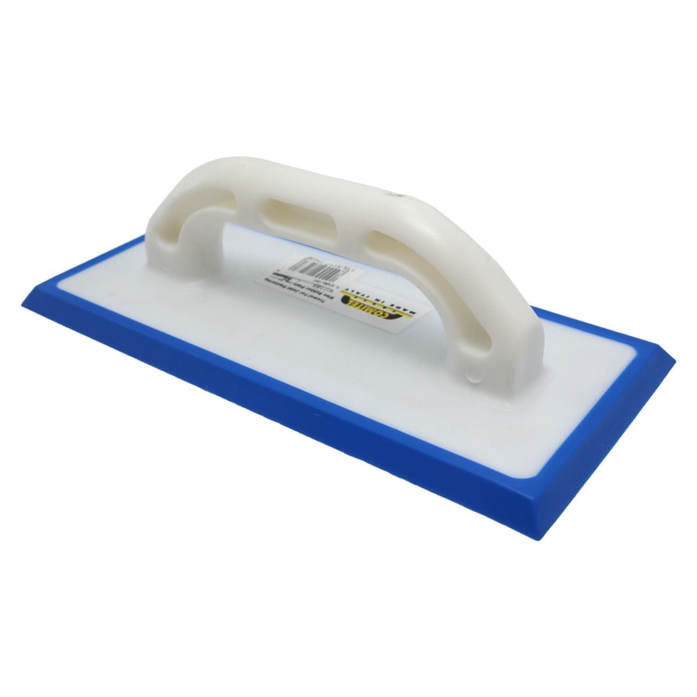 Trowel for joint plastering. This article has a shockproof plastic support and an interchangeable blue rubber plate.