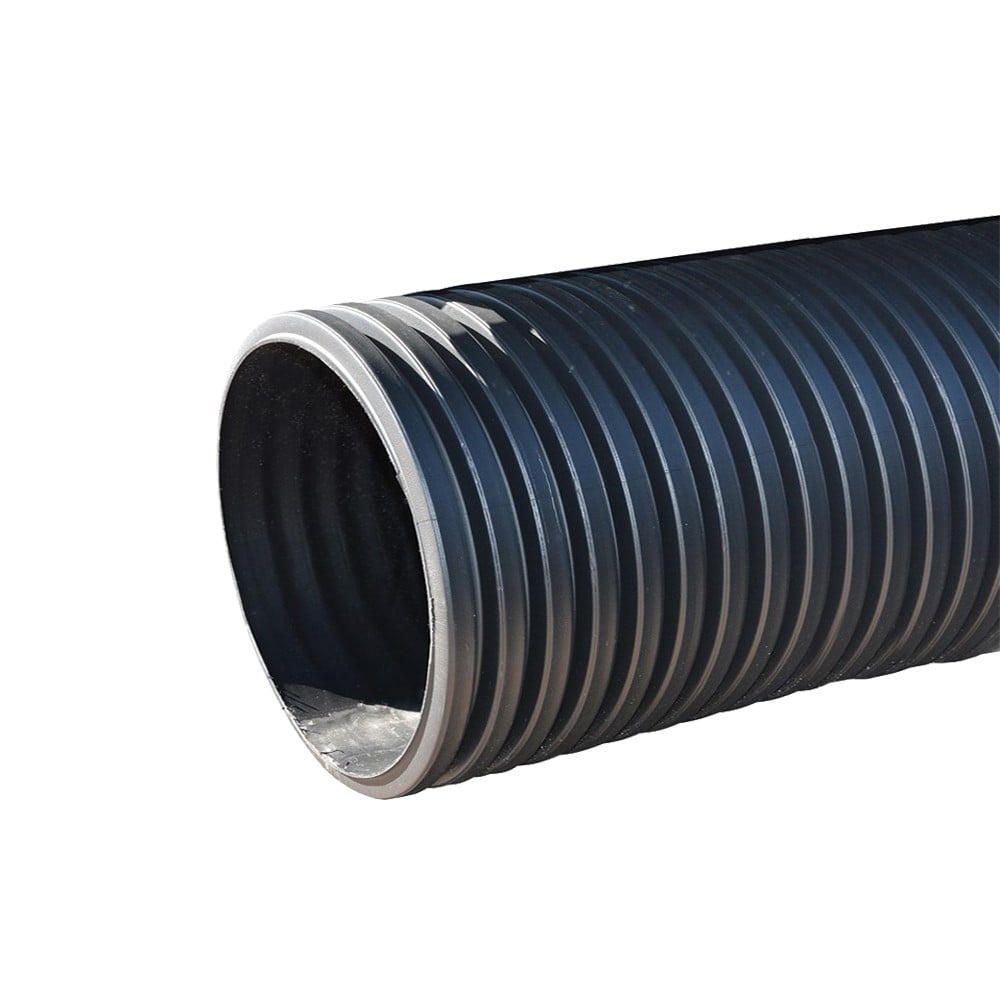 High density polyethylene pipes (HDPE) for non pressure underground systems, made through continuous co-extrusion of two layers; the internal layer shall be smooth to facilitate visual inspection with cameras, while the external layer shall be corrugated and of black colour. The system (pipe+joint) is fully compliant with standard EN 13476-1 and certified with product quality label issued by an accredited certification authority, with external nominal diameter DN/OD * mm, ring stiffness class SN ** (equal to *kN/square metres) measured according to standard. The pipe is produced by a company operating in compliance with the production quality system foreseen by standard EN ISO 9001/2000. Each length of pipes must be equipped with socket connection or external sleeve relative EPDM sealing gaskets in accordance with standard EN 681, to be placed in the first groove between two following corrugations of the pipe’s edge to introduce in the socket.