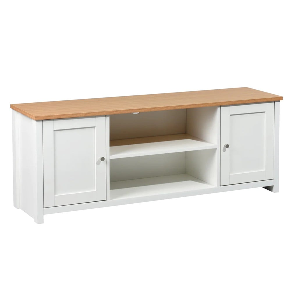 A contemporary design and elegant details come together to create the entertainment collection. With a warm finish and ornate details offers a touch of contemporary style perfect for any living room. The modern style come with beautiful white gloss and matt walnut color creating a strong contrast, which gives you the ability to customize the product in your environment regardless to your style