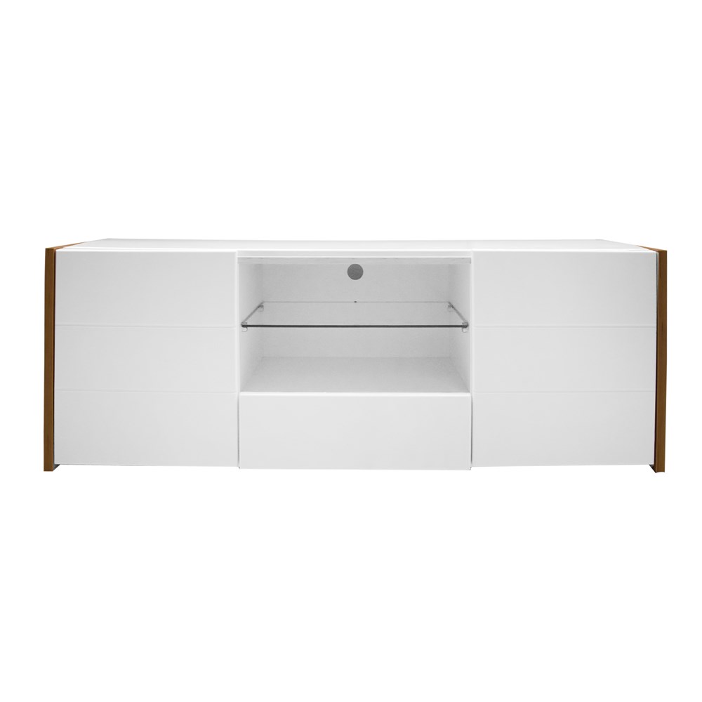 A contemporary design and elegant details come together to create the entertainment collection. With a warm finish and ornate details offers a touch of contemporary style perfect for any living room. The modern style come with beautiful white gloss and matt walnut color creating a strong contrast, which gives you the ability to customize the product in your environment regardless to your style