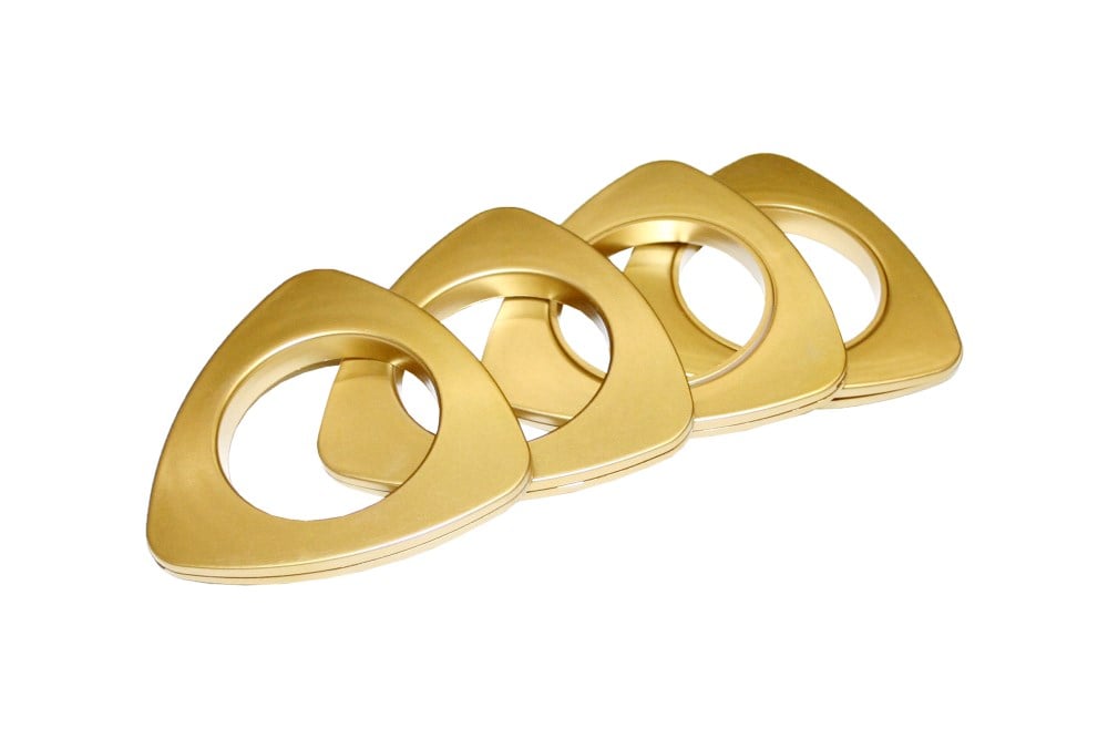 Gold colored ring, triangular shape and size Ф50mm fits to white, cream, and light colors. These help you to create a curtain with a full view of the heavy and interesting decor that meets your right of the screen which decorates your window and changes the meaning and style and make your environment.