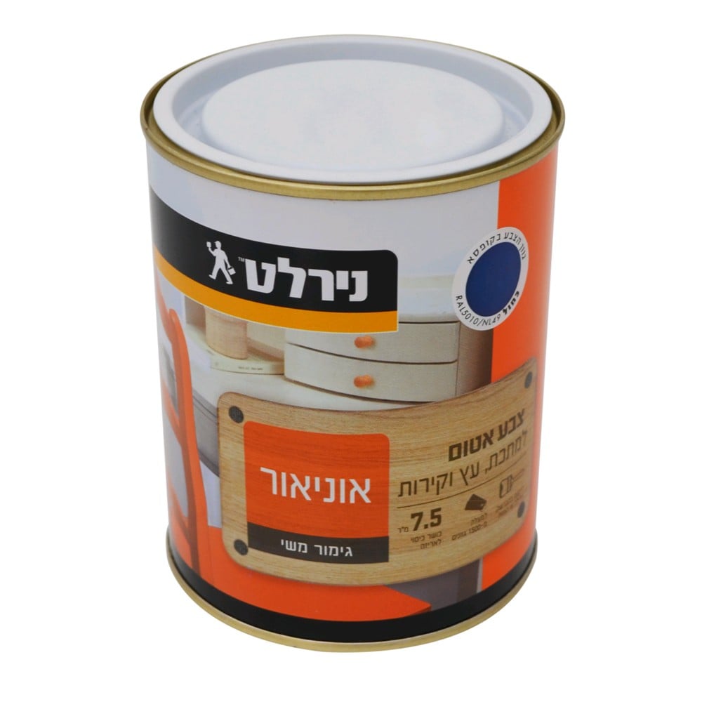 Universal oil paint Unior 750 ml blue. Matte satin finished paint based on a single-component polyurethane resin. Provides protection and an elegant finish. Does not contain lead and complies with Standards Institute of Israel Specification no: 32. Suitable for painting metal, wood and walls after suitable preparation. Special Features: Based on a flexible single-component polyurethane resin and durable over time. Excellent durability under exterior conditions. Provides protection from moisture and water. Easy to use and provides a uniform coat with no brushstrokes. Used for painting wooden, metal and plaster surfaces. Suitable for interior and exterior use. Surface Preparation: Clean to remove dust and contaminants, remove loose coats to obtain a clean and strong infrastructure. Sand with sandpaper, a steel brush or sandblasting. Apply a suitable primer Application. Brush Roller Regular sprayer. Shades In RAL shades or according to the Nirlat. Millennium color fan, Gloss Satin, DFT (microns) 50, Theoretical coverage 10 (m2/L), Dry to touch 1 hour, Dry to recoat 24 hours, % of solids (by weight) 75. General Remarks: The practical coverage (consumption) depends on the condition of the surface being painted, the surface roughness, the weather conditions, the tool used for application etc. Do not apply the material when the temperature is below 7⁰C or when rain is predicted.