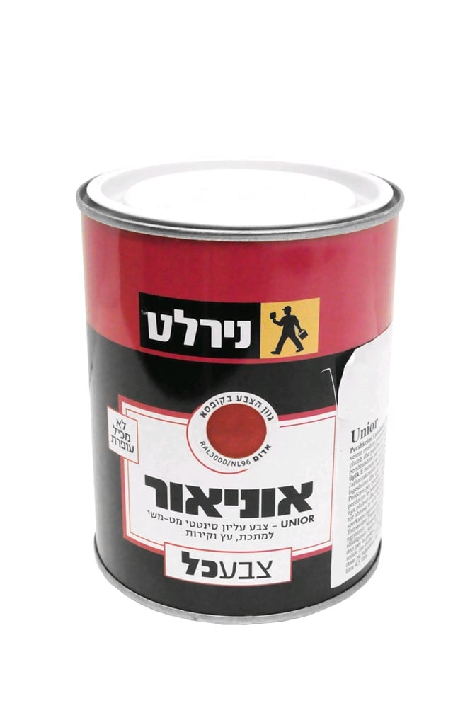 Universal oil paint Unior 750 ml red. Matte satin finished paint based on a single-component polyurethane resin. Provides protection and an elegant finish. Does not contain lead and complies with Standards Institute of Israel Specification no: 32. Suitable for painting metal, wood and walls after suitable preparation. Special Features: Based on a flexible single-component polyurethane resin and durable over time. Excellent durability under exterior conditions. Provides protection from moisture and water. Easy to use and provides a uniform coat with no brushstrokes. Used for painting wooden, metal and plaster surfaces. Suitable for interior and exterior use. Surface Preparation: Clean to remove dust and contaminants, remove loose coats to obtain a clean and strong infrastructure. Sand with sandpaper, a steel brush or sandblasting. Apply a suitable primer Application. Brush Roller Regular sprayer. Shades In RAL shades or according to the Nirlat. Millennium color fan, Gloss Satin, DFT (microns) 50, Theoretical coverage 10 (m2/L), Dry to touch 1 hour, Dry to recoat 24 hours, % of solids (by weight) 75. General Remarks: The practical coverage (consumption) depends on the condition of the surface being painted, the surface roughness, the weather conditions, the tool used for application etc. Do not apply the material when the temperature is below 7⁰C or when rain is predicted.