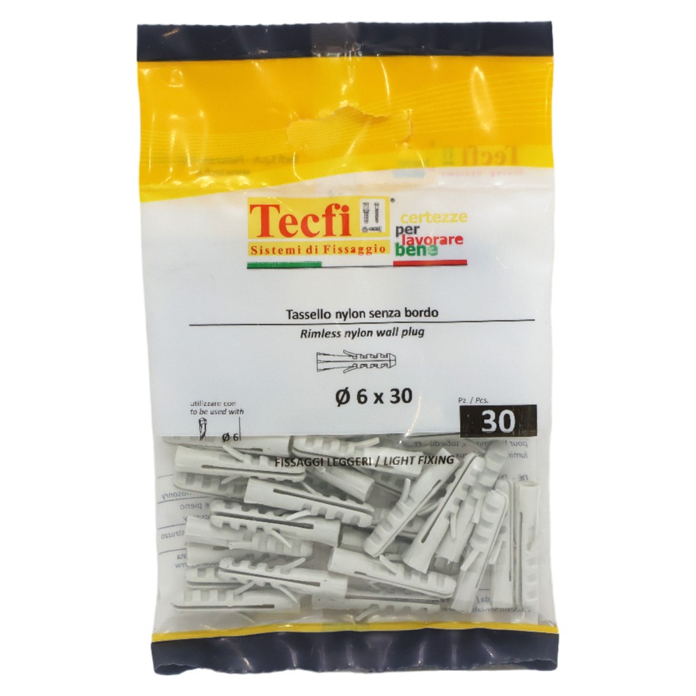 Unrimmed Nylon anchor, Ø6x30mm, Bag 30