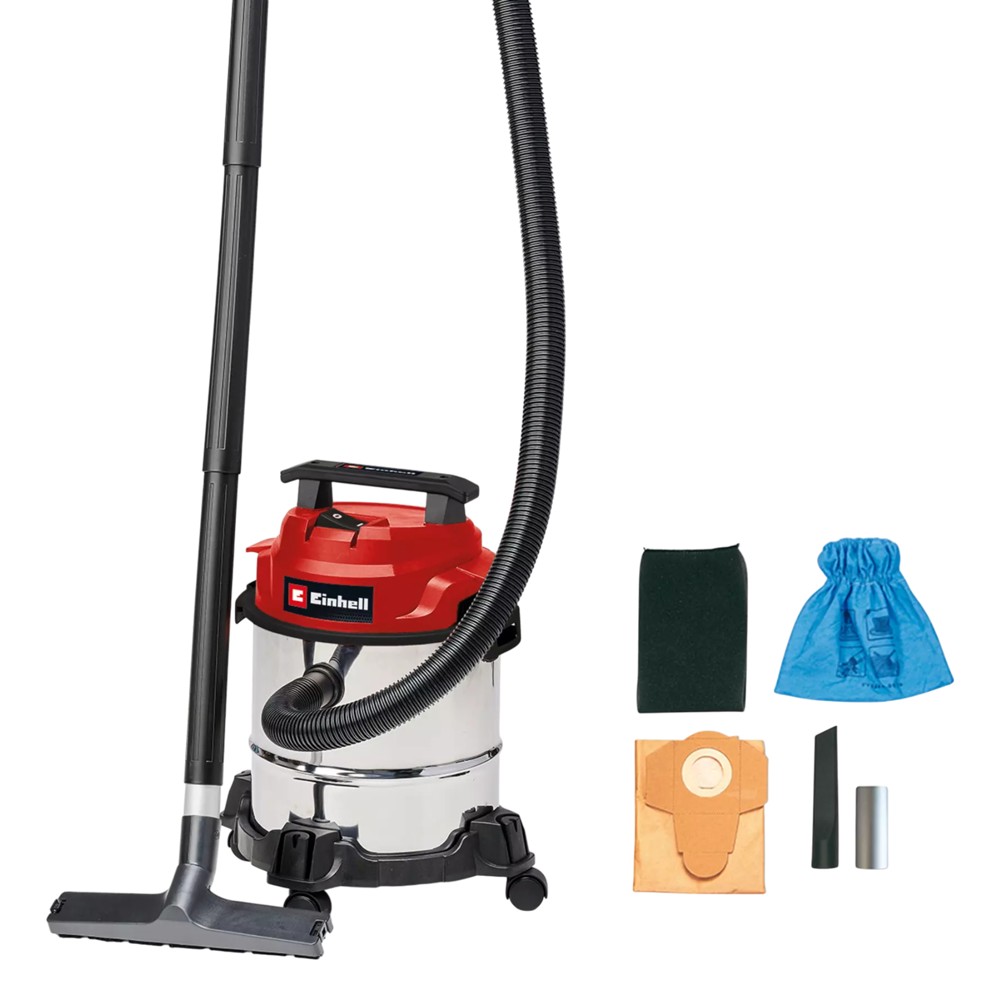 The Einhell TC-VC 1812/1 S vacuum cleaner is a powerful and practical device for wet and dry cleaning, ideal for DIY use. With a 1250 W motor and 180 mbar suction pressure, this vacuum cleaner offers high performance in cleaning various dirt. Its stainless steel tank has a capacity of 12 liters, making it suitable for long cleaning sessions without the need for frequent emptying. The device comes with a 2.5 meter cable and a 1.5 meter suction tube, which provide a good range of movement during work. With a noise level of 78 dB, it is relatively quiet for its category. The vacuum cleaner is equipped with wheels for easy movement and a transport handle for comfortable use.