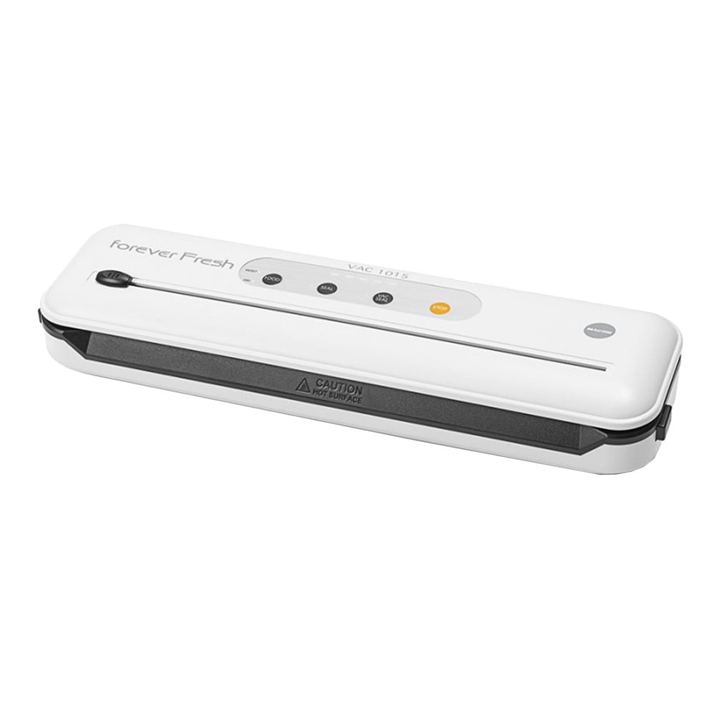 Vacuum machine with large double-sized sealing bar for a tight seal. Selector for wet / dry food. Practical built-in cutter that allows you to make precise cuts. Equipped with function to perform vacuum with jars. Tube and jars not included in the package.