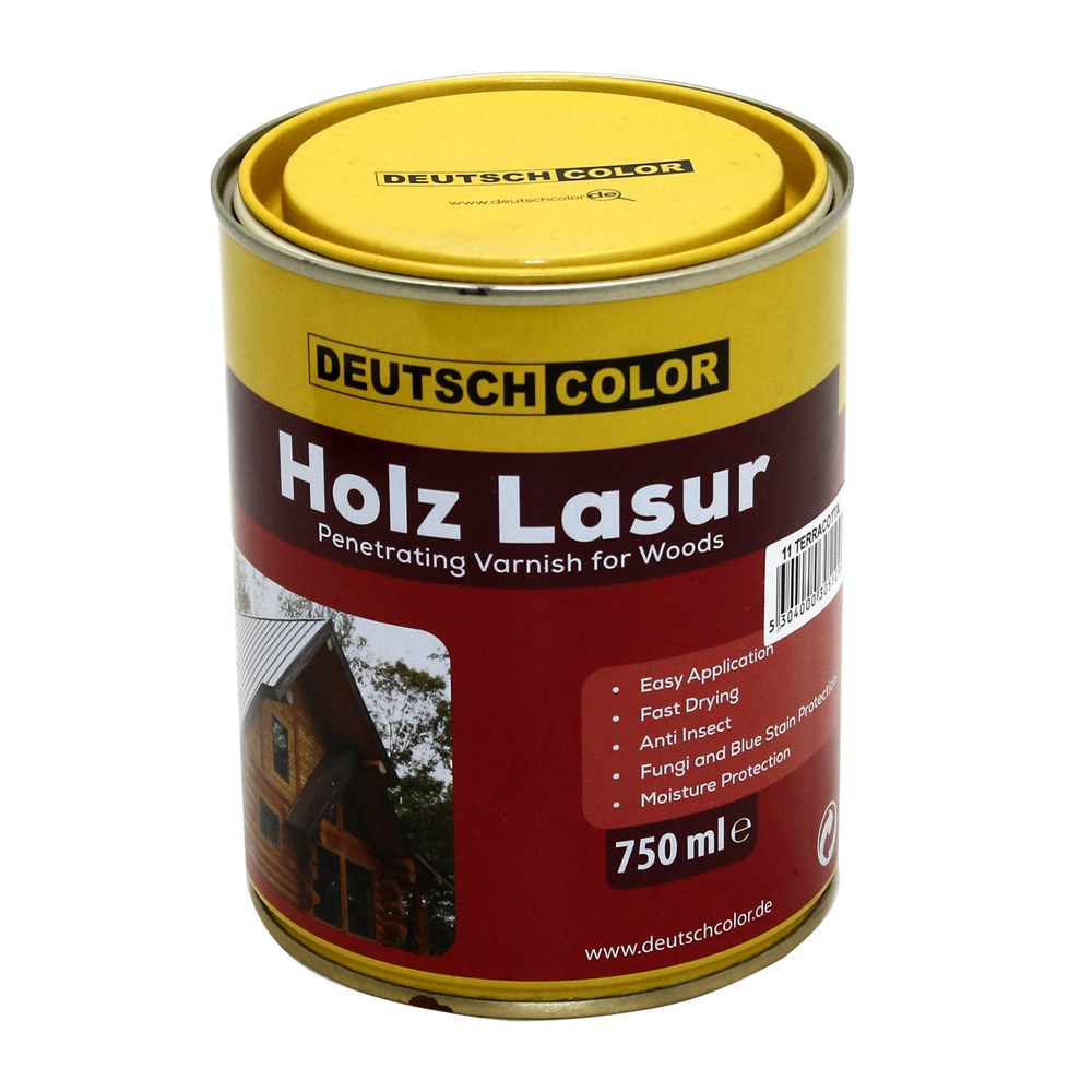 HOLZ LASUR is a coloured wood preservative for exterior and interior use. It penetrates into the wood and protects against fungi and blue stains. It is ideal for application on wooden surfaces like doors, windows, frames, claddings, garden furniture, sheds, rafters and beams, fences. It is easy to apply and has great elasticity that makes it resistant to cracking, blistering and peeling. It has excellent durability to sunlight and moisture and offers effective protection enhancing the natural beauty of wood. Surface preparation-Application: Surfaces must be clean and dry and rubbed down with a suitable abrasive paper. It is ready for use. Apply 1 to 2 coats of HOLZ LASUR. The final color of the wood depends on the natural color and absorption of wood and the number of coats applied.