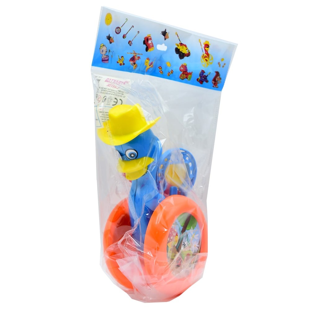 Push and pull single rod walker toy for babies, equipped with a rod made of plastic material and a baby rattle in duck shape, which helps young children learn how to walk, while stimulating their curiosity. The rod has an adjustable length, which allows it to be adjusted in accordance with the child's height. This toy helps to develop motor skills and it stimulates the development of conceptual skills and tactile (touch) and visual (sight) perception skills in children. The constituent material and paint have no content that can be toxic or harmful to children and the product is certified for safety in use. This product is suitable for use by children aged 1-3 years.