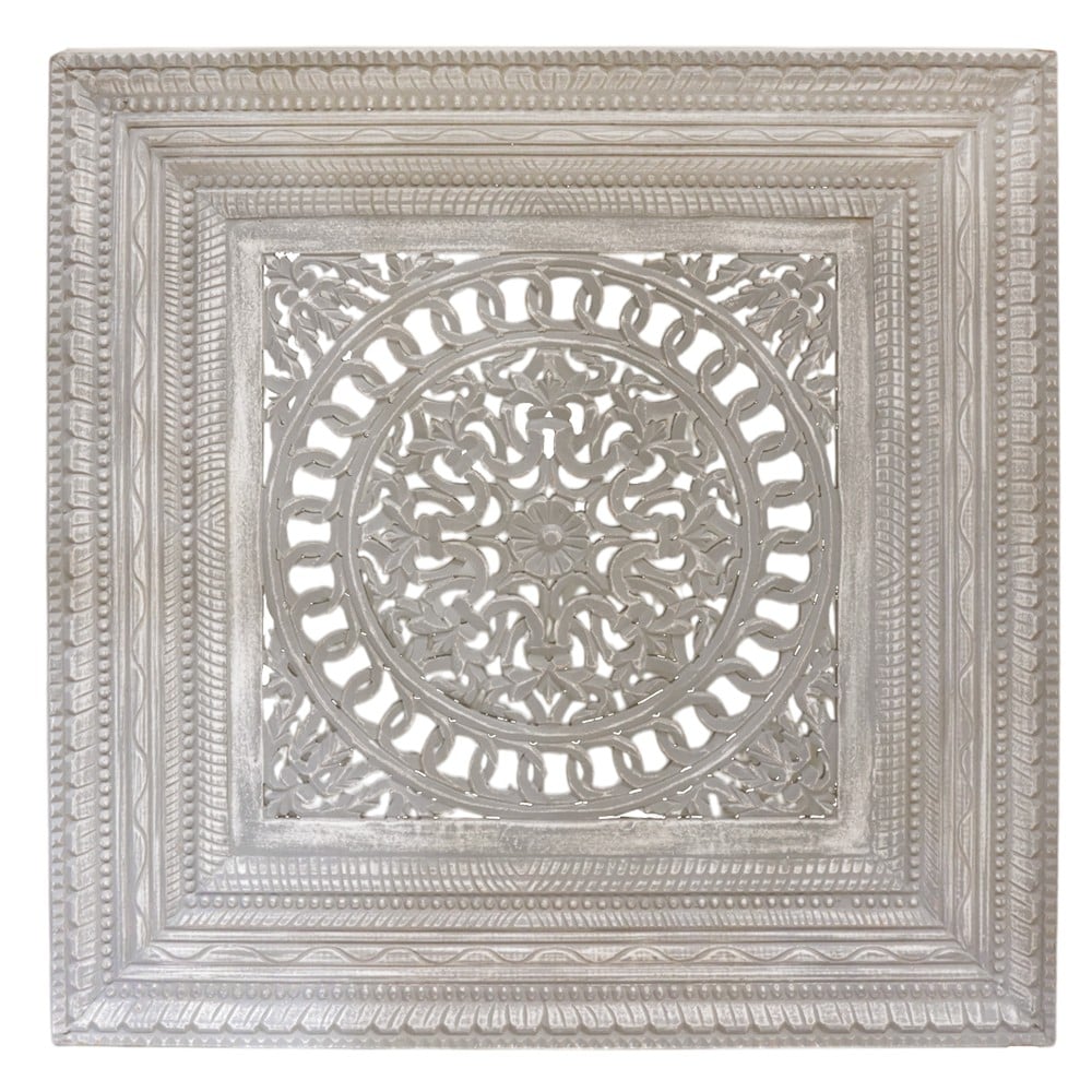 This wall decor with dimensions 90x90 cm, brings a special and aesthetic touch to the premises. Its creation from white wood gives it a clean and fresh feel, making it an excellent choice for decorating walls in homes, offices, or other spaces. With its simple and modernized style, this wall decor is easily compatible with most interior decorations. It is ideal for adding a great mix of modern and traditional styles to the premises.