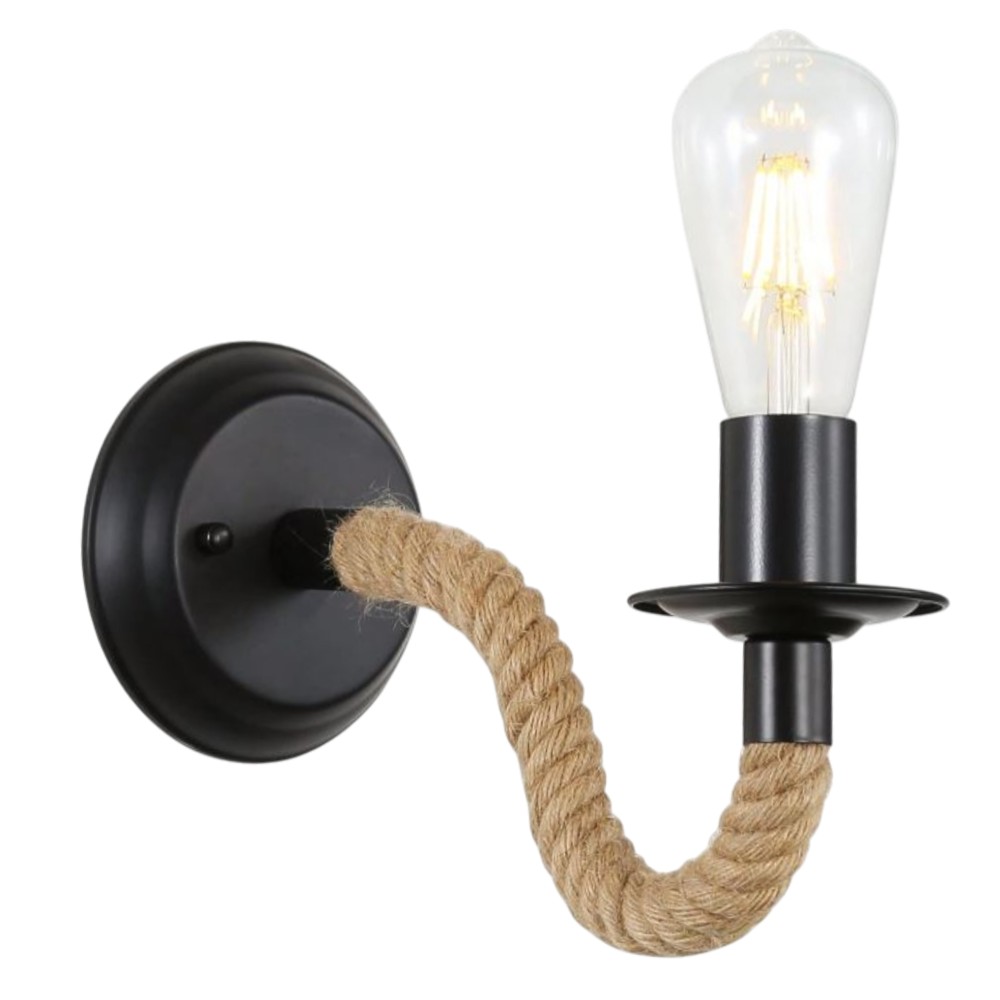 Wall lamp with E27 base, dimensions 26x16 cm, made of metal and rope, in black color. Industrial and rustic style, ideal for giving character and warmth to any environment.