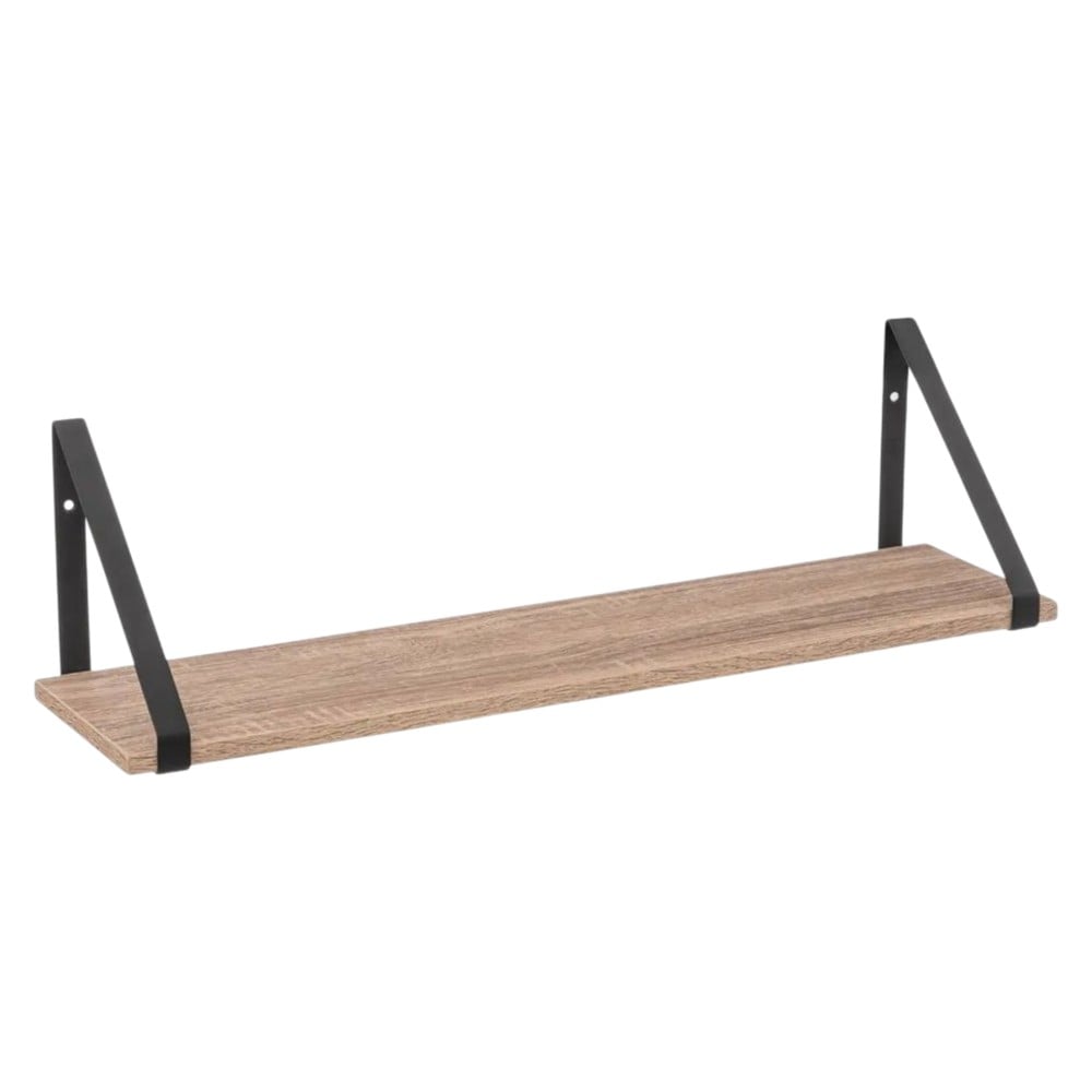 Enhance the style and functionality of your space with this elegant wall-mounted shelf. Featuring a beautiful combination of natural colored melamine and black metal brackets, the shelf creates a modern contrast that fits seamlessly into any setting, whether it’s the living room, kitchen, or office. Perfect for displaying decorations, books, or small items, this shelf offers smart organization without taking up much space.