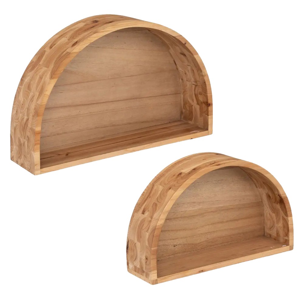 Wall shelf (x2), Maude, mdf/fir material, natural color. Size 40x11xH25 cm; 55x13.5xH34.5 cm. The shelves can be easily and quickly mounted on the walls and thanks to the hidden fastening system, the brackets cannot be seen, there is no need for accessories to hide the bolts or screws and the installation does not require the use of profiles. This set is suitable for indoor use in living rooms, bedrooms, offices, studios, etc.