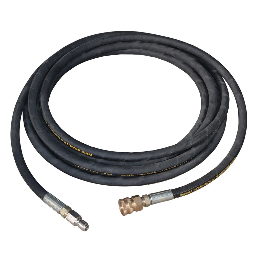 Hose for high pressure washing machines, made of high top quality rubber to resist high pressure up to 280 bar. The connection is made by click cuopler from both sides, inlet and outlet. This couplers are made of brass for longlife and resistnce to atmosferic agents (rust)